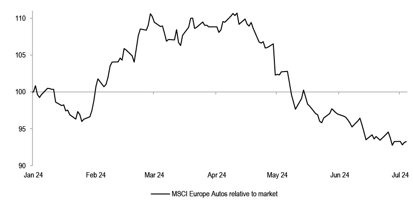 • Autos (UW): Autos have significantly underperformed in the past few months, on weak commentary from the OEMs. Key issues being flagged are: inventories have normalised, demand is softer, prices in ICE are still holding up, but mix is weaker, and China keeps getting tougher. We stay UW Autos, expecting continued pricing weakness and rising China competition.