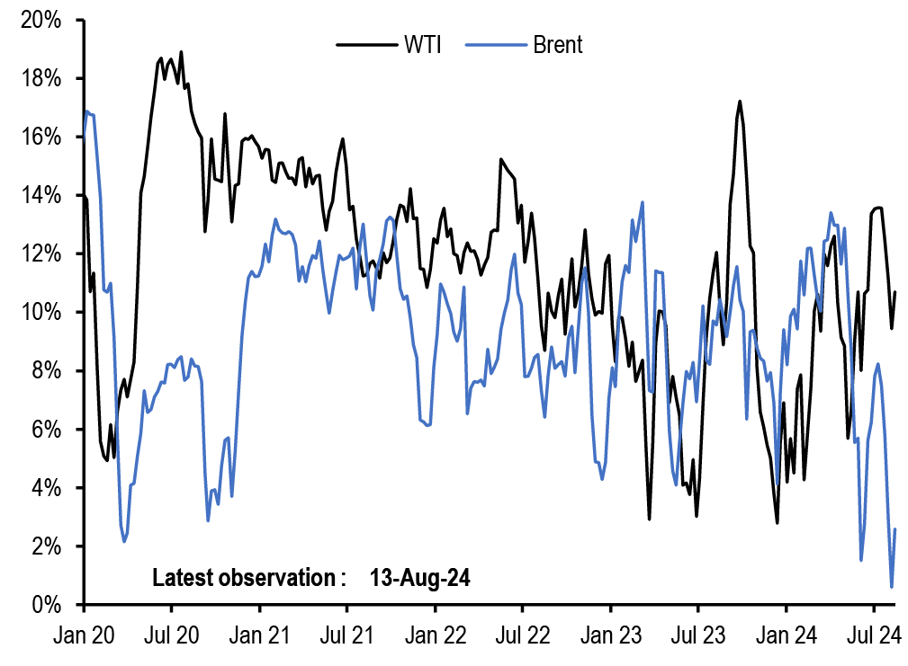As a % of open interest. Last obs. 13th Aug 24.