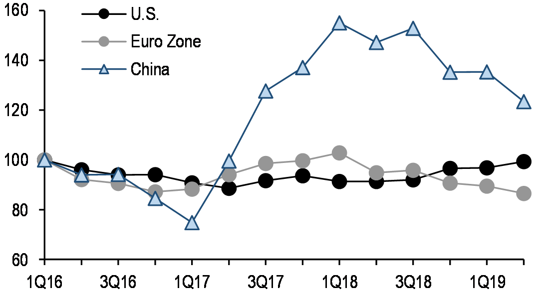 European banks continued to invest in blockchain initiatives in 2019, but we have yet to see tangible cost benefits. However, we continue to see long-term potential for DLT to transform banks’ business models and expect continued momentum in adoption in the medium term. In particular, we see Trade Finance blockchain solutions offering the most incremental efficiencies in the banking sector relative to other use cases, especially with payments largely digitalized and alternative Know Your Customer (KYC) solutions through other mediums available. The $2trn+ Traditional Documentary Trade segment has yet to achieve end-to-end digitalization, but blockchain has demonstrated its potential to materially reduce inventory lead times and lower operational costs, especially through the use of smart contracts. While we see widespread implementation of blockchain solutions at least three to five years away, challenges such as the macro-economic environment, legal and regulatory frameworks and technical challenges—such as cross-platform integration—may decelerate further progress (Sinha and Shah).