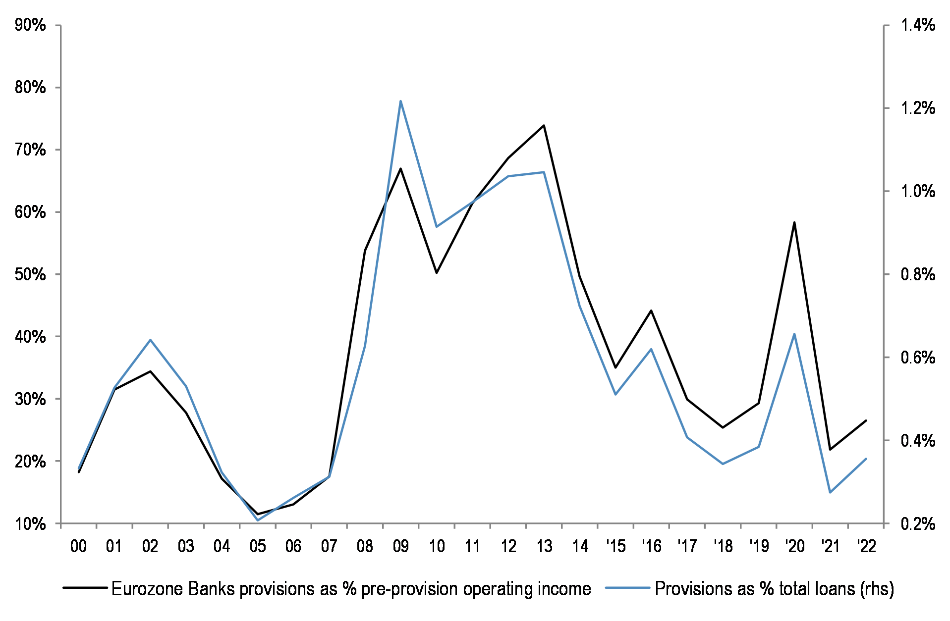 • Further, Banks’ deposit base is likely to fall, and with rising deposit betas their net interest income is likely peaking now. The unwind of PEPP, TLTROs and QT, along with a potential change in reserve requirements, could be the concerns. From the regulatory side, the sector might not enjoy as favourable a backdrop as it did recently, with buybacks and capital return to shareholders as good as they get. Also, the risk of punitive taxes is elevated – it is being discussed in a number of countries.
