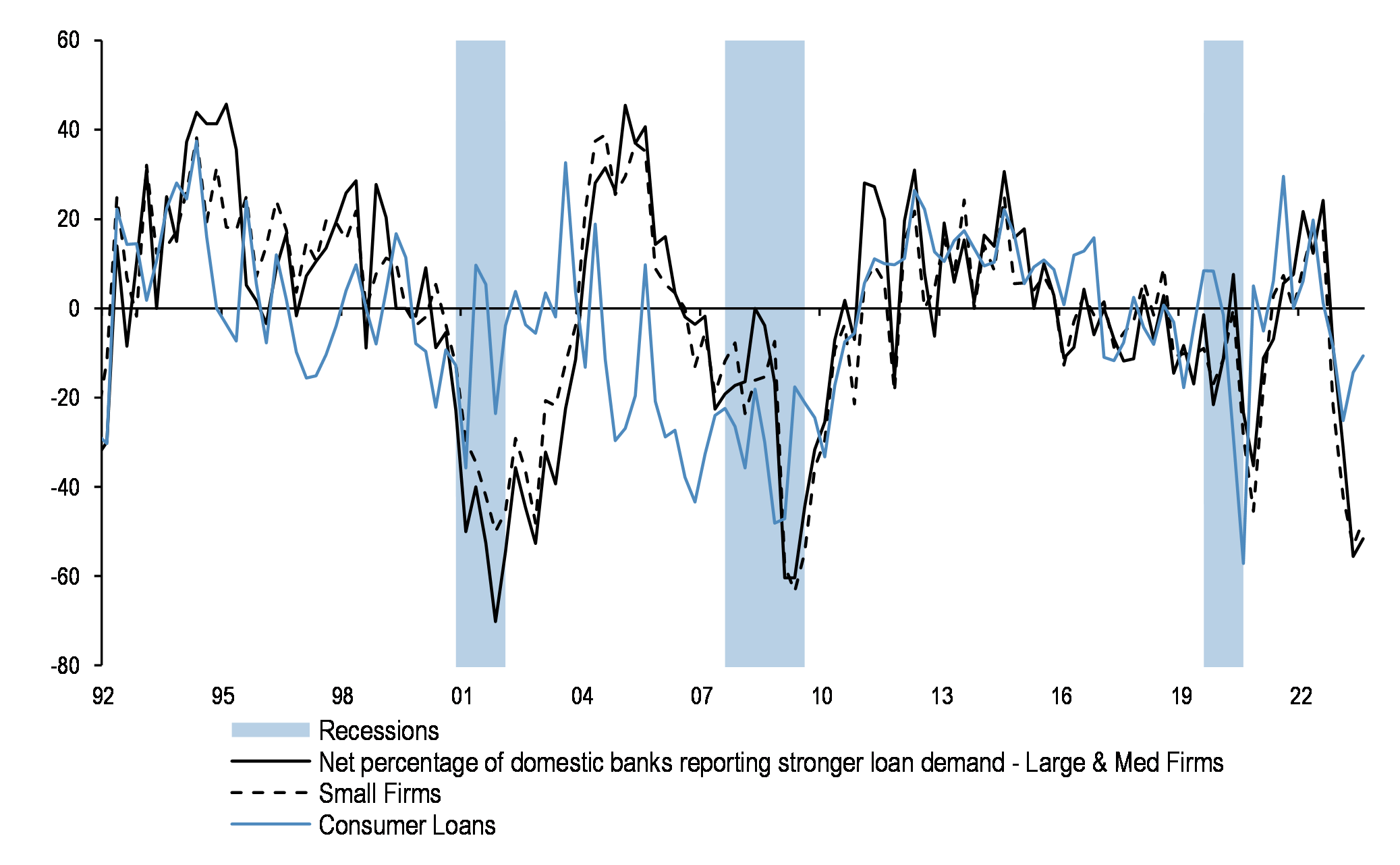 Higher rates and restrictive monetary policy have resulted in a sharp decline in loan demand.