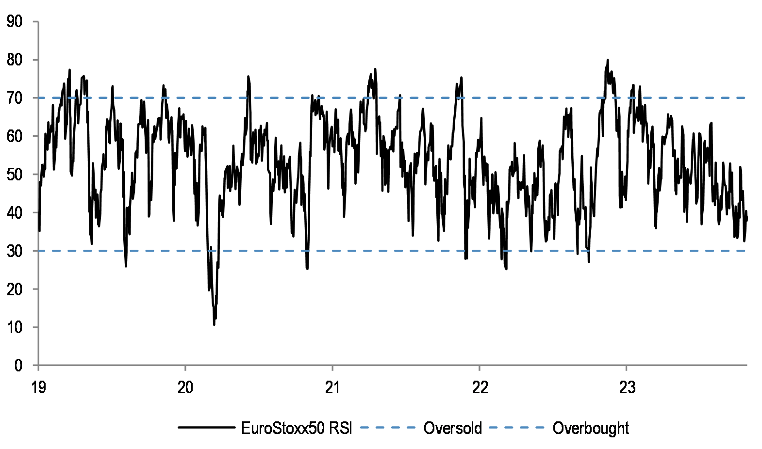 The group traditionally displays the most positive correlation to bond yields. If bond yields peak out, or if ECB cuts rates next year, Banks stocks’ profitability is likely to weaken.