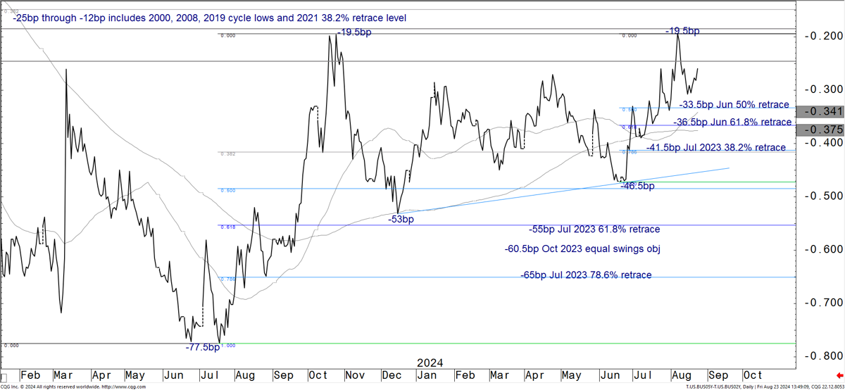 Chair Powell’s dovish tone supports our forecast of consecutive 50bp cuts at each of the next two meetings, but the August employment report is still two weeks away, valuations are no longer cheap, and dealer positioning is elevated, so we stay neutral duration for now. Powell’s comments support further long end steepening, and we recommend holding 5s/30s steepeners to express our core view. Most front-end curves appear too steep relative to their drivers, but 3s/7s offers value for those who want to position for a quicker and more aggressive easing cycle. We discuss the outlook for T-bill supply and valuations. Hold tactical 5y5y inflation swap longs.
