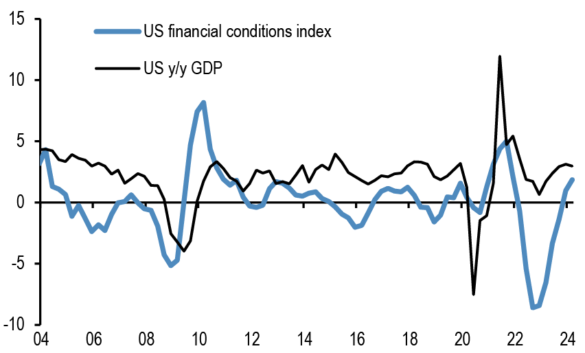 Figure 4: Financial conditions index and y/y real GDP growth for the US