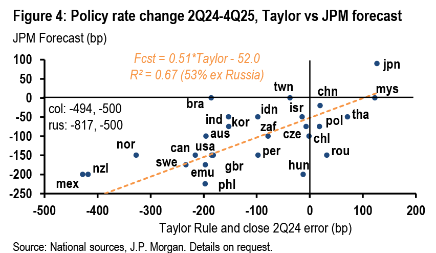The coming year is forecasted to deliver the most synchronized monetary easing cycle in history outside of a recession. In tracking the start of this global easing cycle, it is important to not overstate the importance of the Fed and ECB in leading the way. But it is a mistake to confuse synchronization with coordinated action. Domestic conditions are almost always the key to policy setting and we show in a special report this week that the output gap and core inflation explain most of the cross-country variation in policy rates—both now and in our forecasts for the year ahead (Figure 4).