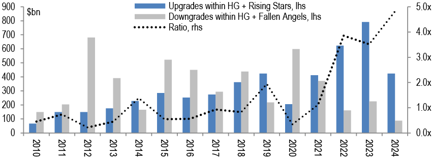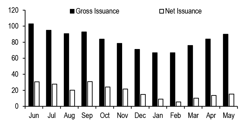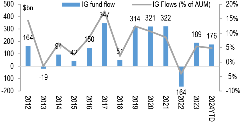 Spreads to stay tight, though we revise our YE24 HG bond spread forecast to 110bp from 95bp (current 109bp). 2H24 Demand to be less strong with slower growth and election uncertainty. We also revise gross issuance forecast up to $1.45tr.