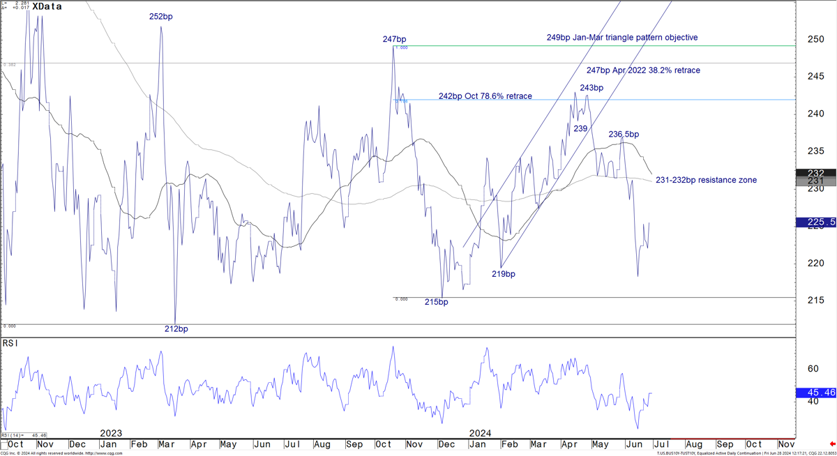 | 5s/30s curve (bp) | 17 | 45 | The curve continues to carve out a cycle bottom pattern |