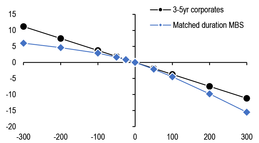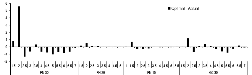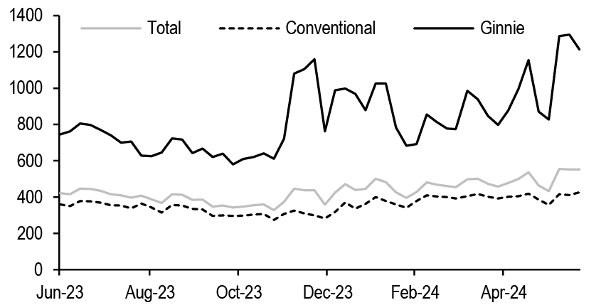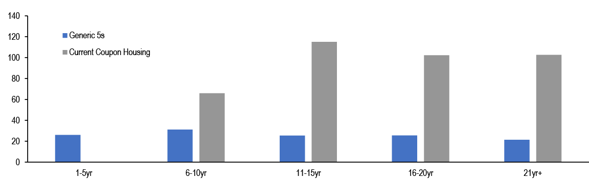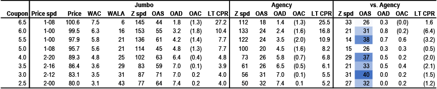 | FNMA 30yr 6% Front Tsy OAS (bp) | 28 | 30 | Mortgages are a bit snug, but not terribly so. If our house rate forecast of a single cut this year is realized, higher coupons should again outperform in the second half of the year. |