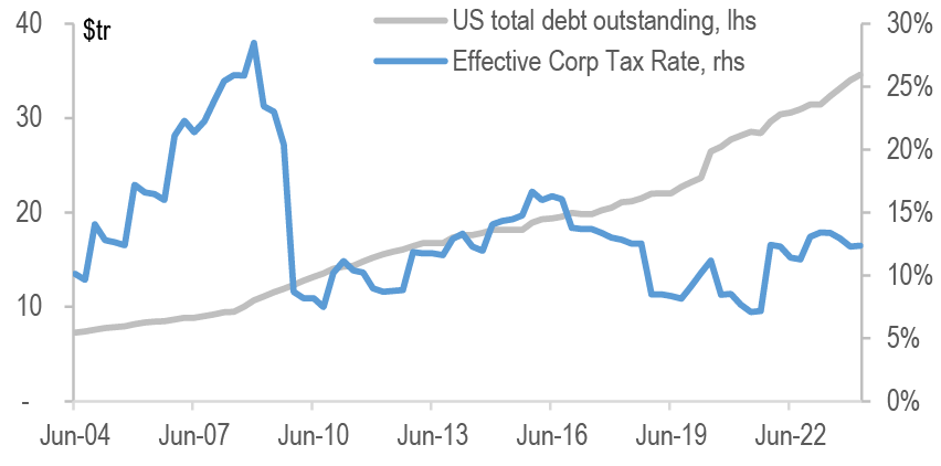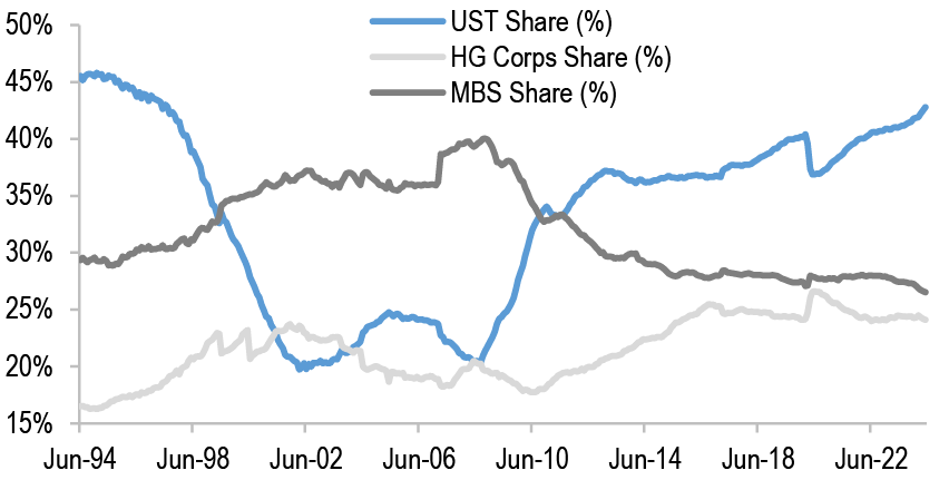 We expect a rangebound environment for Treasury yields in the months ahead. Even shallow easing cycles support lower yields, but Fed pricing and carry implications make it challenging to be long duration. We continue to see value in 5s/30s steepeners to position for Fed easing and fiscal dynamics. We discuss the impact of different election outcomes on the fiscal outlook and the Treasury market. We update our Treasury supply and demand forecasts. Remain bullish at the front end of the inflation curve. Though valuations have moved closer to fair, we expect a positive risk premium to emerge ahead of the US election: hold 1Yx1Y inflation swaps. Stay overweight $-SSA spreads.