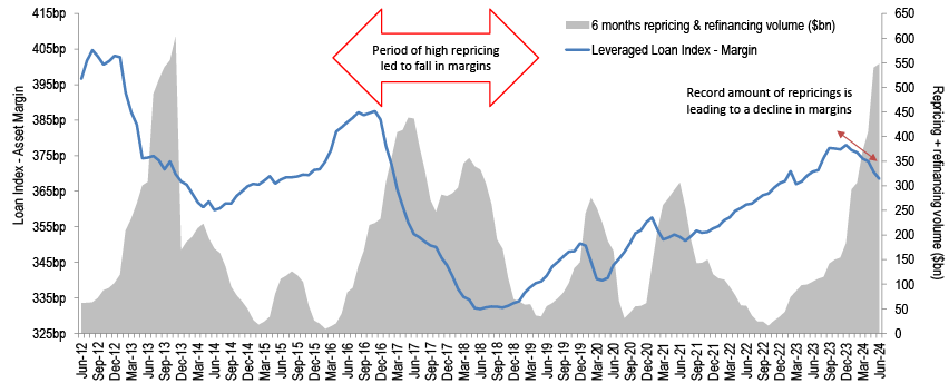 We believe leveraged credit will provide carry-esque returns over the next six months and spreads will finish 2024 well inside the long-term average.