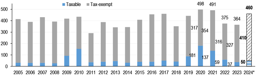 Finding sustained market consensus while transitioning to an easing cycle may be difficult, but we suggest investing with a longer-term perspective, particularly in periods where Treasuries sell-off. We look for 2H24 IG muni index performance of 3-3.5% and favor adding idiosyncratic municipal risk opportunistically on market weakness, and highlight potential market cheapening in the period before the election.