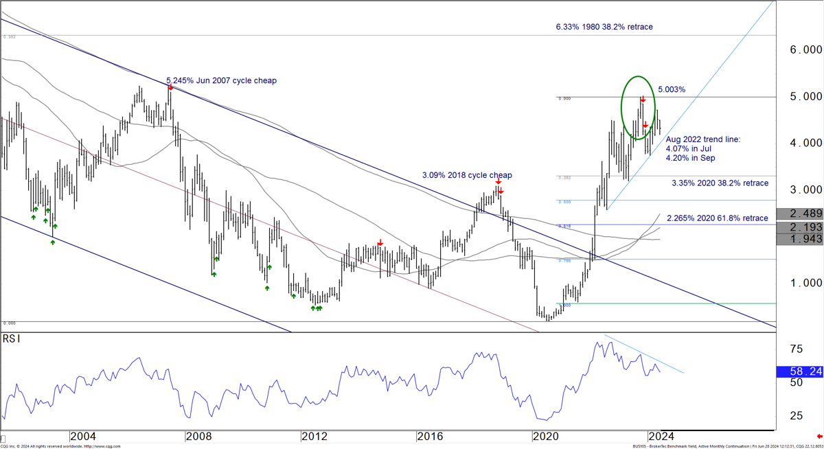 | 5-year yield (%) | 4.33 | 3.85 | Longer-term setup suggests an emerging bull market |