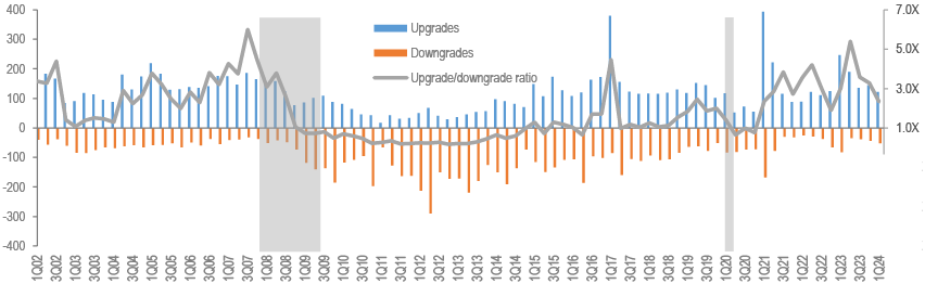 | Domestic HY Index spread to worst (bp) | 351 | 380 | We believe HY spreads will be supported in the near-term by low near-term recession risks and improving capital market access into 2Q. |