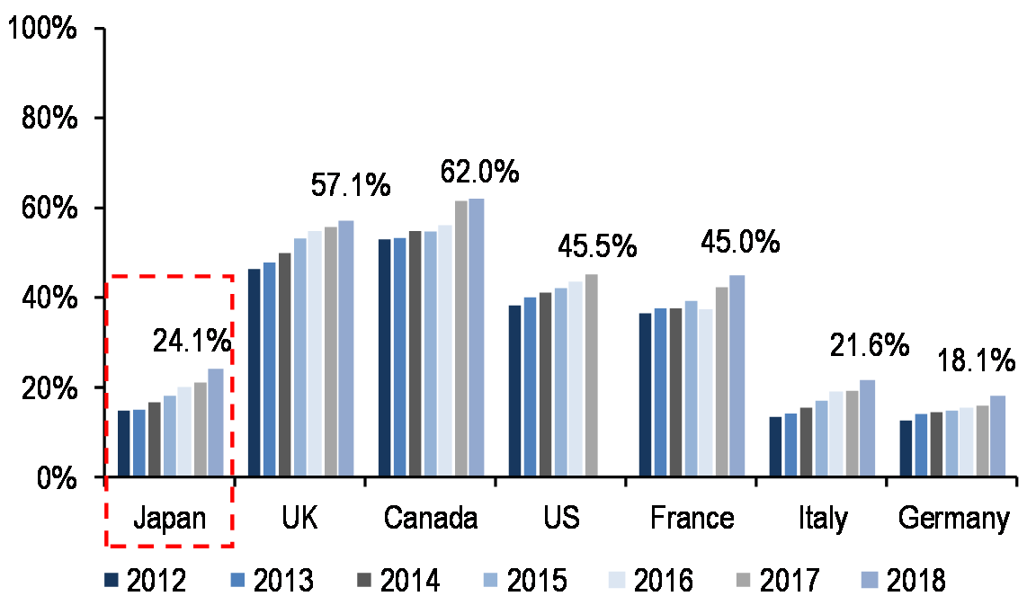 Cashless payments are growing rapidly in Japan, especially since government promotion started in October 2019. The Japanese cashless rate stood at 24% (BIS basis), but at 49% with direct debit/bank transfers. Credit card payments are driving the rise, and QR code payments are growing the most. Loyalty programs are also growing rapidly, supported by platformers’ reward ratios as high as 20% and the negative interest rate environment in Japan. Platformers’ loyalty points, with currently modest market size, could be used as an alternative payment measure as their ecosystems expand. It could bring issues for monetary policy/financial stability in the medium term (Nishihara).