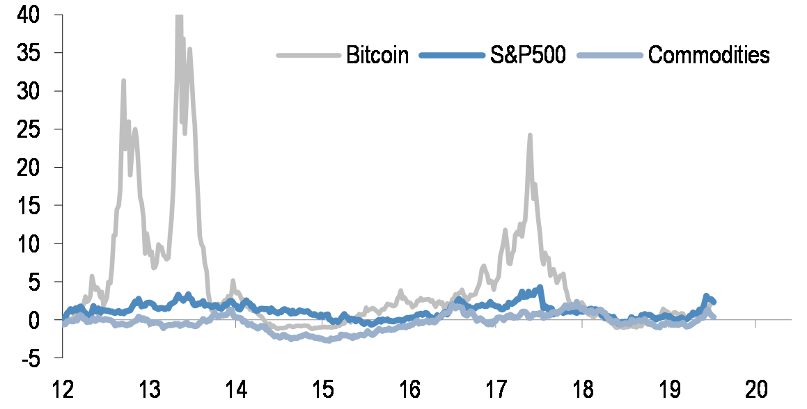 - Bitcoin prices have corrected much of the gap versus intrinsic value but have yet to demonstrate their value for portfolio diversification.