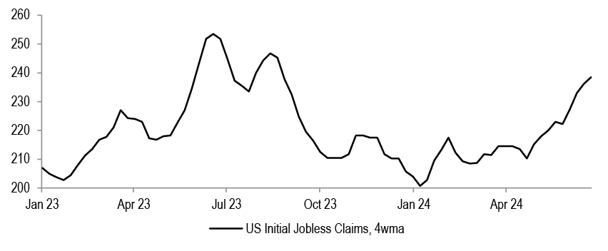 In the US, initial jobless claims have been trending higher over the last couple of months.