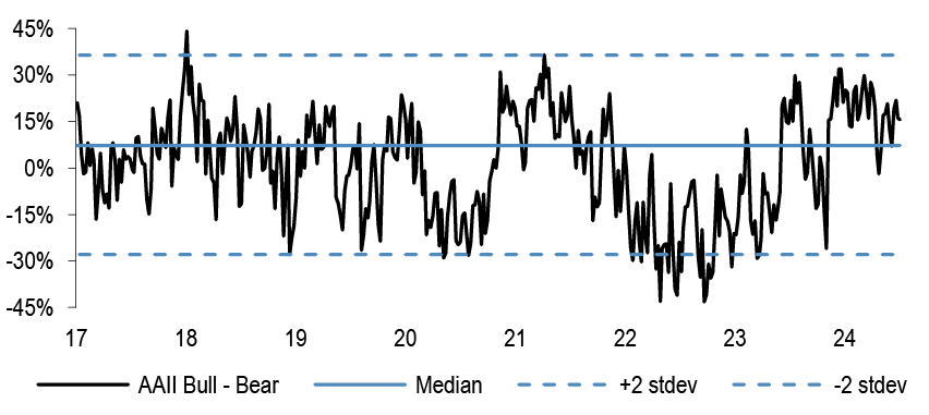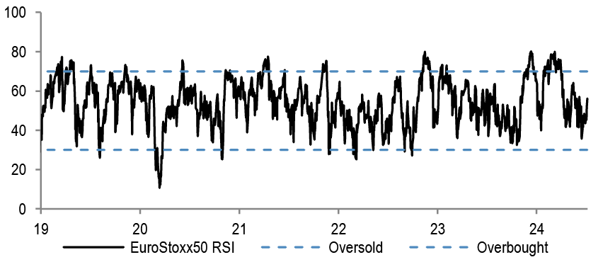 • The consensus view in the first half of the year has been to buy Cyclical sectors on PMI rebound, and also to favour consumer exposure on an improvement in real disposable incomes. While we have some sympathy with the view that European consumers could fare better this year than last, on falling inflation and on rate cuts, and clearly the Eurozone consumer wasn’t maxed out, with still elevated net wealth position, we have argued through Q2 to play a barbell of Defensives together with Mining - see report. Stylewise, we entered the year again OW Growth vs Value, same as last year, and keep that view, for now. Also, one should note the terrible performance of small caps everywhere again this year - behind by 15% in the US, 3% in Europe and 11% in Japan so far in 2024. Within this, we have very recently advised to finally turn more bullish on some selected small caps, such as FTSE250 in the UK - see report, to take advantage of the heavy prior underperformance and political changes.