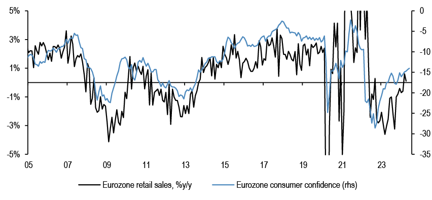 Figure 2: Eurozone retail sales and consumer confidence