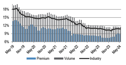 Others* 10.5% 10.0% -0.5% Neutral