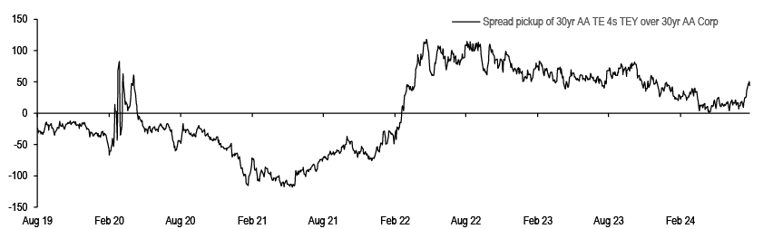 10-year muni yield (%) 2.69 2.10 Finding sustained market consensus while navigating transition to an easing cycle may be difficult, but we suggest playing the long game, and buying municipal bonds with a longer term perspective, particularly in periods where Treasuries sell-off. We suggest adding idiosyncratic municipal risk opportunistically on market weakness, and highlight potential market cheapening in the period before the election.