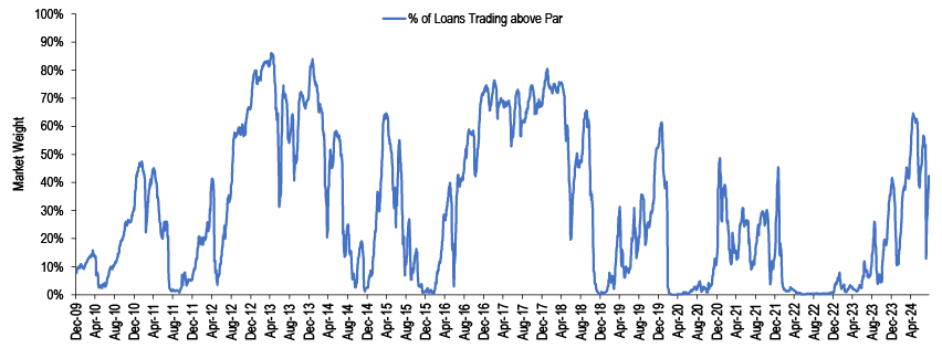 JULI spread to Treasuries (bp) 110 110 Still attractive yields, a continuation of positive returns, relatively lighter supply in the coming months and the start of Fed cuts will be supportive of spreads, while slower growth and a trend towards lower yields limits meaningful further spread tightening.
