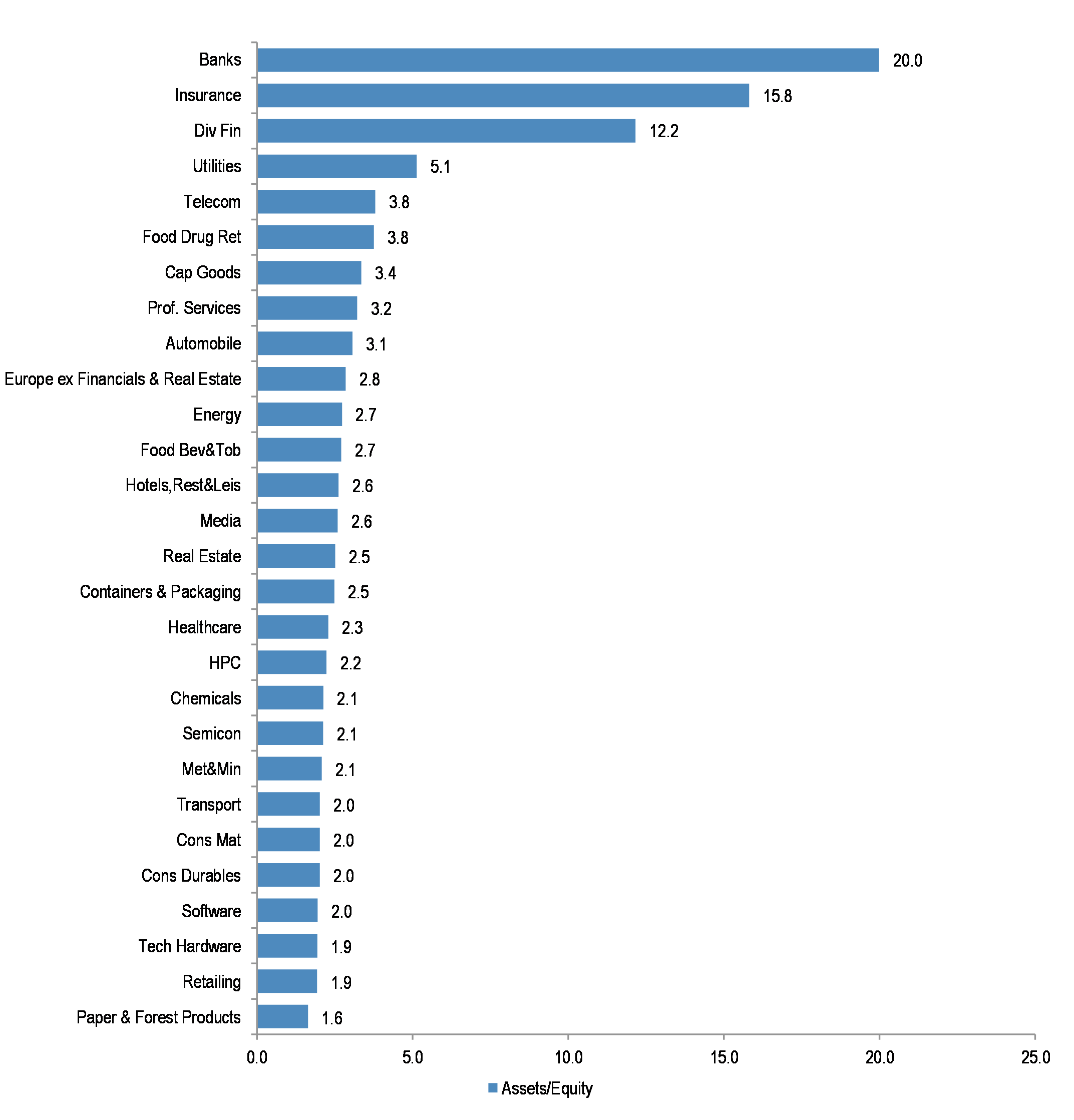 Figure 12: MSCI Europe sectors Asset to Equity