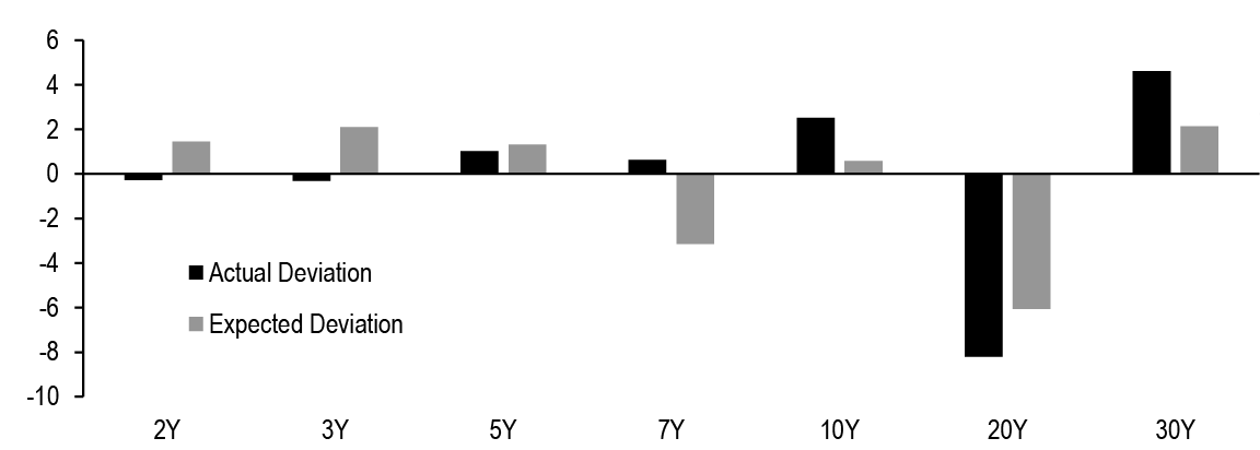 2-year yield (%) 4.07 3.20 Maintain 5s/30s steepeners and 75:6 weighted 5s/10s/30s belly-cheapening butterflies to position for higher term premium