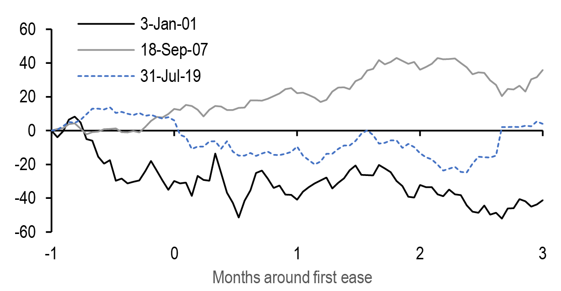 Markets are pricing in a less dovish path than our forecast, but we remain patient before adding duration given long investor positioning. Jackson Hole speeches have not traditionally led to large yield moves, except in 2020 and 2022; we do not expect clear guidance from Chair Powell next week. We contrast the upcoming easing cycle with other easing cycles: policy is more restrictive than at any point in the last 30 years, pointing toward a deeper easing cycle, but financial conditions are easy and financial stress is low, making the case for a slower pace of cuts. Hold 5s/30s steepeners as a low-beta long with a better carry profile ahead of the first cut. We review June TIC data. Initiate tactical 5yx5y inflation swap longs.