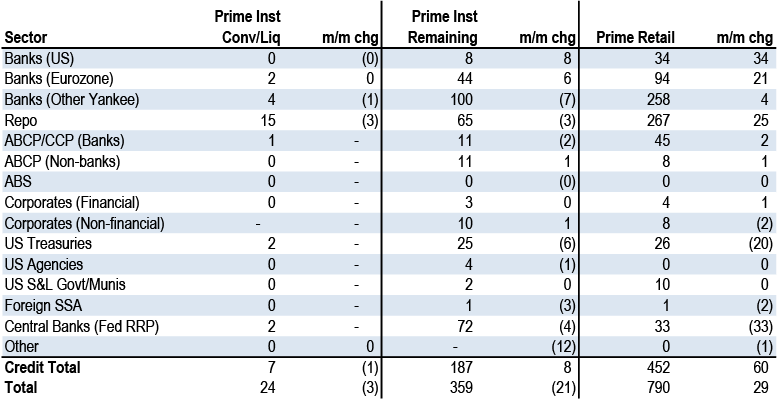 Short-term credit investors continue to favor bank CP/CD FRNs over fixed, with this trend likely to continue in the near term. RRP balances have decreased from their local peak but may be nearing a floor. We review July MMF holdings.