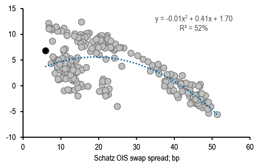 Finally, on a different note, investor focus in the Japanese markets shifted this week to the LDP leadership contest. The first round of the LDP election on Friday delivered a surprising turnaround with the victory of Ishiba over the Takaichi, who was seen to have good chances of winning. While Takaichi would favour fiscal expansion and oppose BoJ rate hikes, Ishiba is considered a relative hawk due to his support for fiscal consolidation and would not oppose the BoJ policy trajectory. Since the market had priced in a Takaichi win scenario, we expect yields to reprice higher and curves to flatten in coming days.