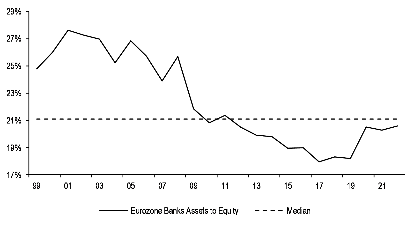 Banks have significantly delevered since GFC, with the leverage ratio currently below the long-term average.