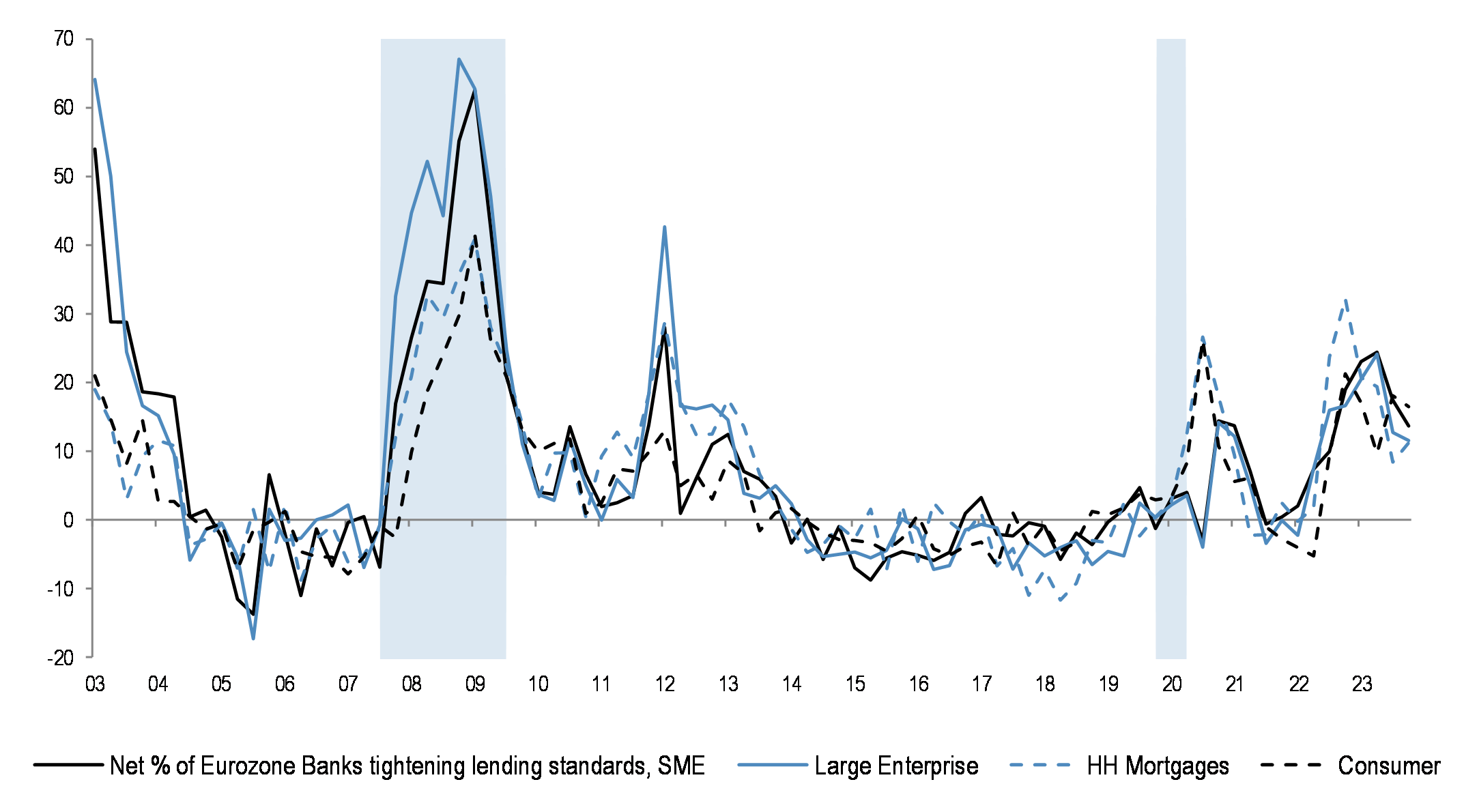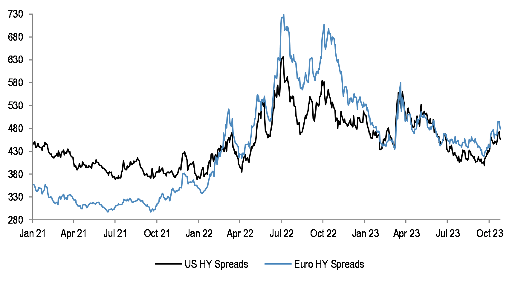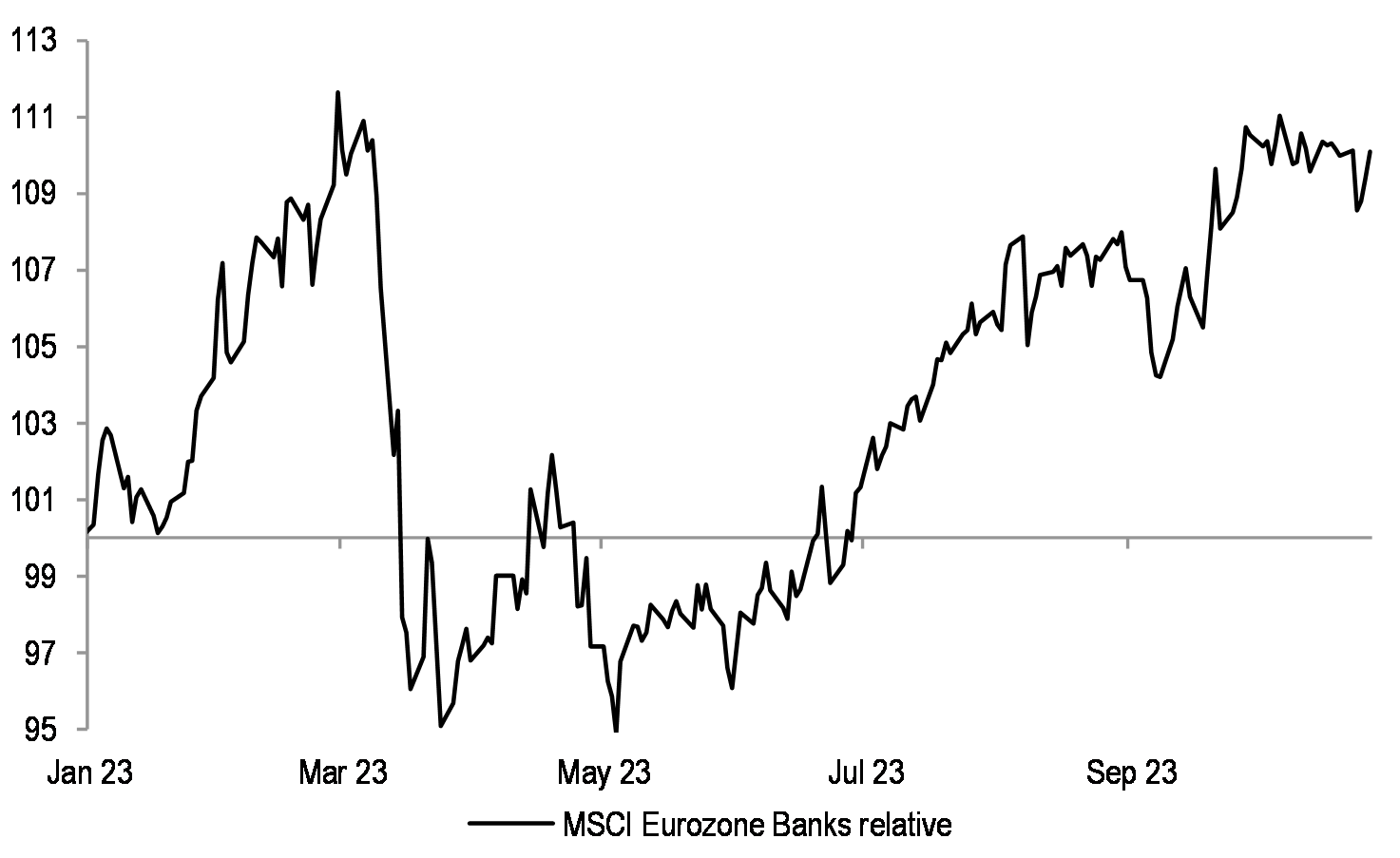 • If the bond yields are in the process of peaking this quarter, as we suspect – see our recent report on locking in the duration trade, then Banks could start to struggle. After all, the Banks rally was underpinned by the sharp move up in bond yields over the past 3 years, with German 10 year moving from -0.5% to 3%, and US 10 year from 1% to 5%. Any potential fall in yields, or the ECB cuts next year, will reduce Banks’ profitability.