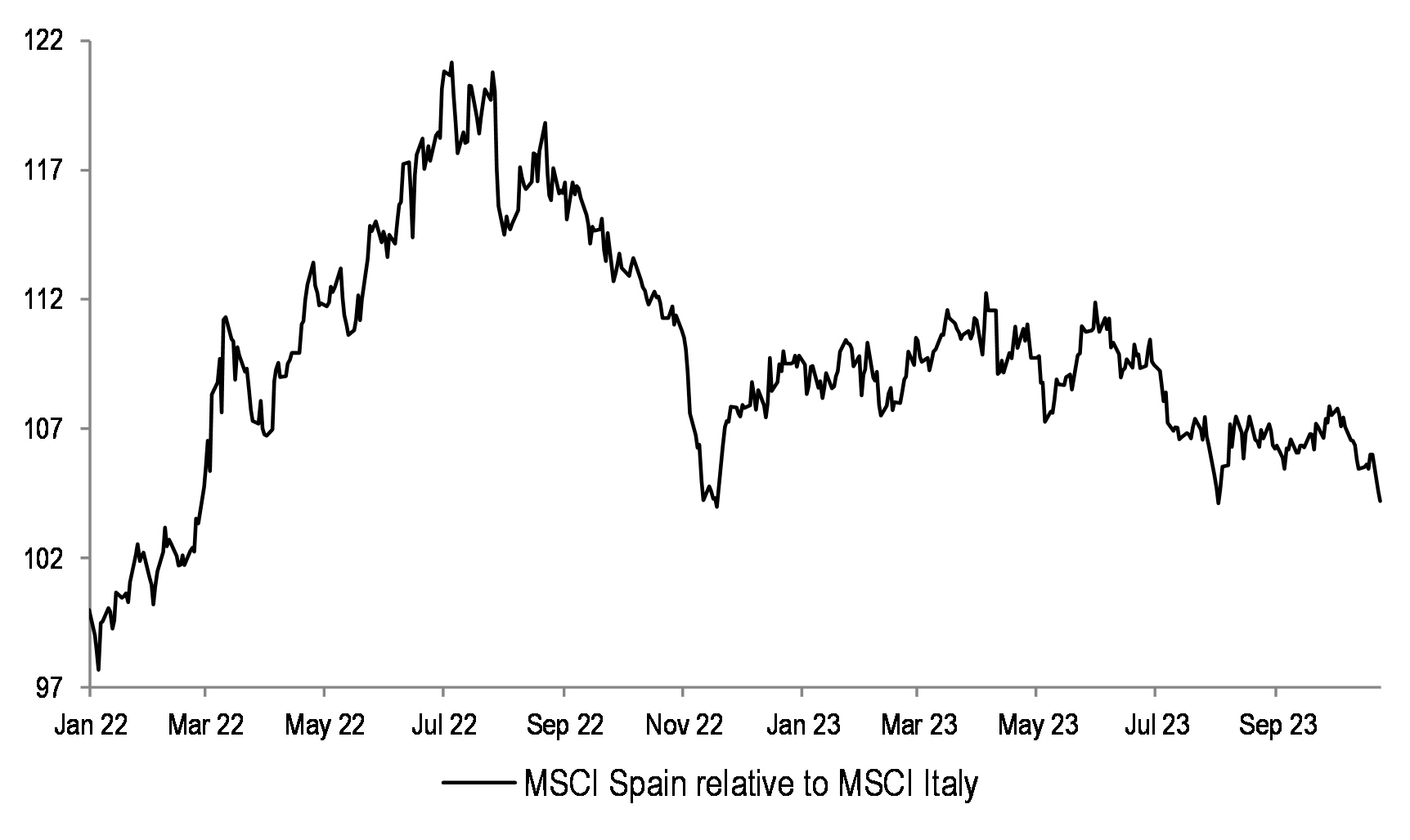 • If Banks start to lag, then the periphery could fall behind core markets. Periphery nicely outperformed the core for a while, Italy is top European performer ytd, up 15%, but Banks relative and peripheral markets relative performances remain very strongly correlated. Within periphery, one could open the Spain vs Italy trade. Spain could benefit from greater Latam exposure, where we remain constructive on Mexico and Brazil, while Italy could see some further widening in government spreads.