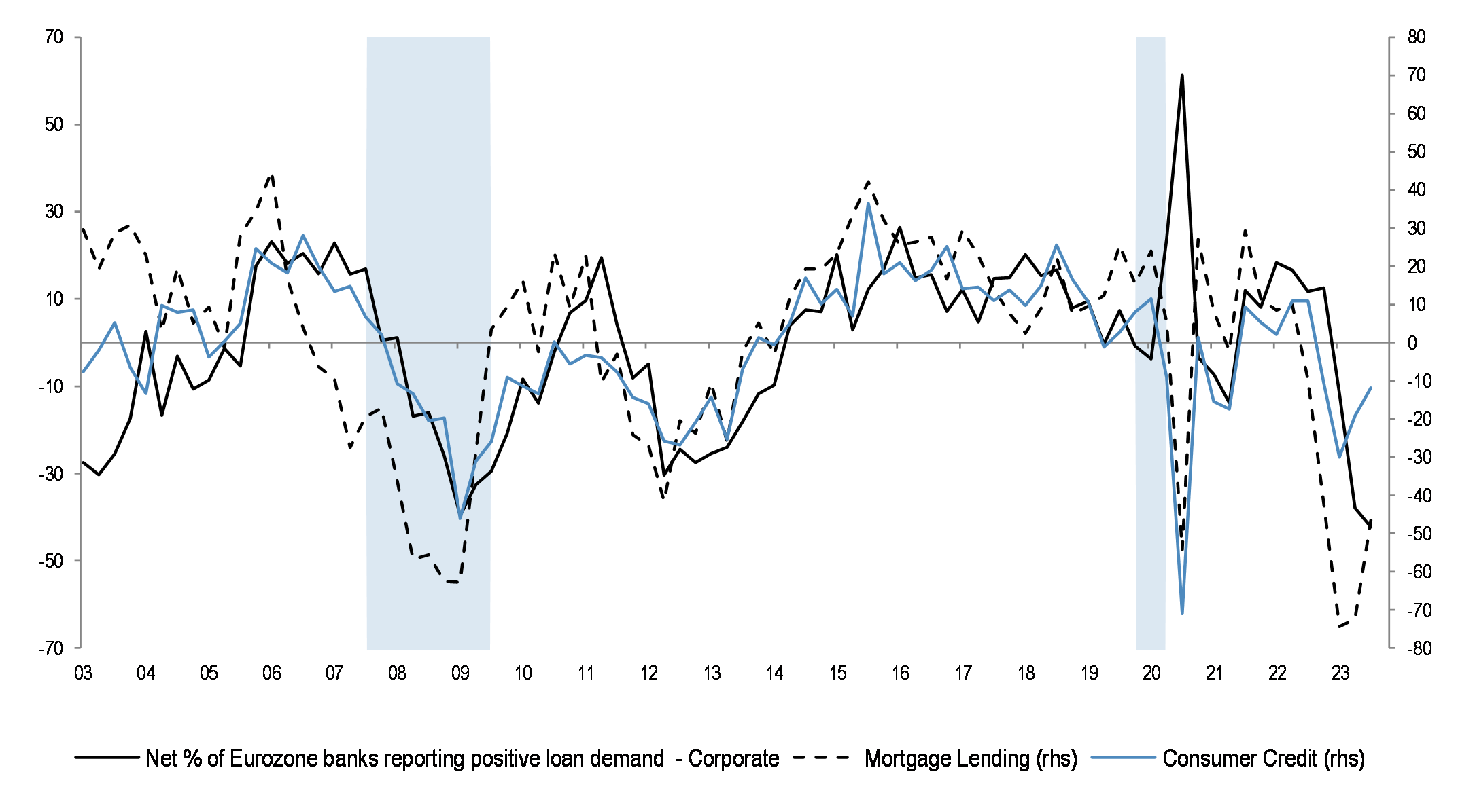 Higher rates and restrictive monetary policy have resulted in a sharp decline in loan demand.