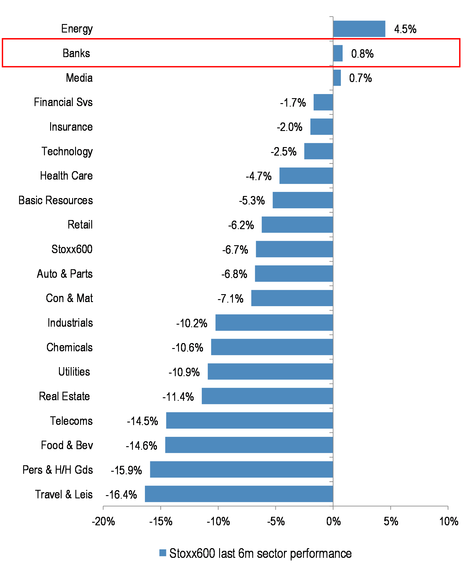 European Banks have been one of the best performing sectors in the last 6 months, only behind Energy.