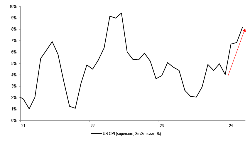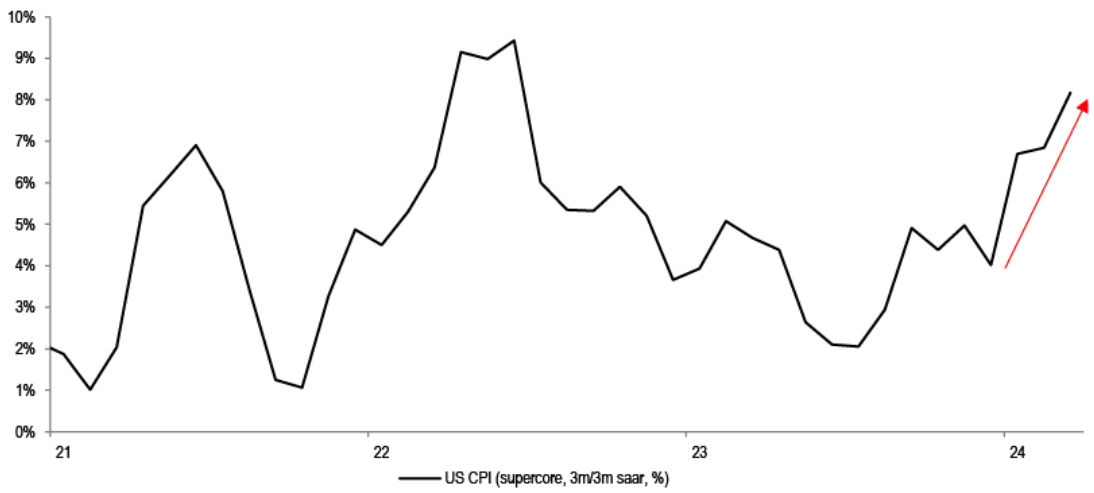 Indeed, super-core CPI in the US has gone up sharply year to date, approaching 2022 highs.