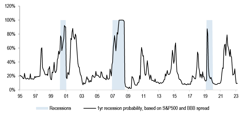 Similarly, our recession probability indicator showed that the market isn’t pricing in any meaningful risk of a downturn over the next year anymore.