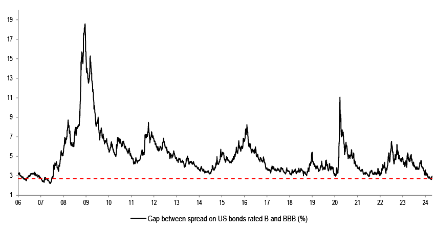 Figure 2: Gap between spread on US bonds rated B and BBB