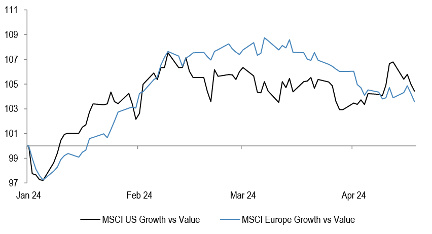 • We held a long-standing OW on Growth vs Value, OW Quality, and preference for Large Caps, alongside regional trades of OW US vs Europe and EM, even as we have this year tactically closed our bearish China call, and have in Q1 closed our US vs Eurozone preference. We stay with Quality, but Growth remains at risk of a reversal, and large caps are outperforming small everywhere again ytd. We argued recently that Defensives such as Utilities are likely to pick up even in the event of rising bond yields, as this might lead to lower beta trading. Healthcare tended to benefit from stronger USD. Some of the reduced beta has been in motion of late, alongside OW on Energy.
