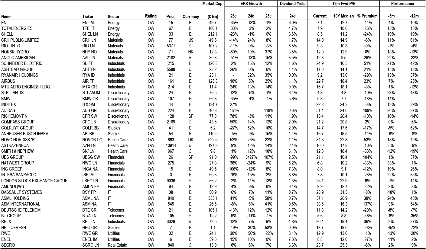 Table 1: Key regions - Current vs Oct ’23 P/E and change in EPS