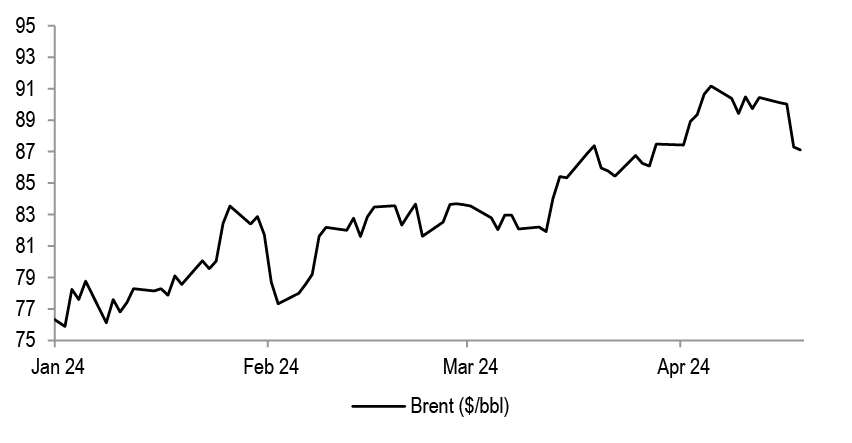 Oil prices are up almost 15% year to date. While earlier in the year oil prices moved up on account of more optimistic demand projections, the more recent rise is driven by supply considerations and rising geopolitical risk premia.