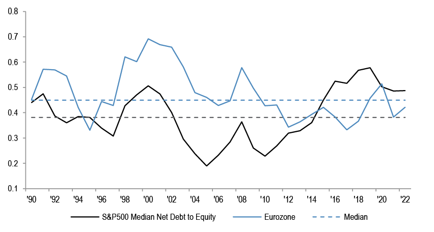 Figure 6: US and Eurozone Median Net Debt to Equity