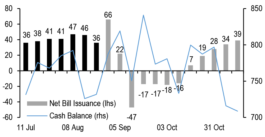 RRP balances have stabilized around $300bn, with limited room to decrease further. Both domestic bank borrowing in the O/N unsecured market and US banks’ participation in the repo market remain minimal, suggesting reserves have not transitioned from abundant to ample yet.