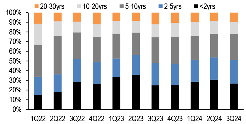 • Short Duration: RRP balances have stabilized around $300bn, with limited room to decrease further. Both domestic bank borrowing in the O/N unsecured market and US banks’ participation in the repo market remain minimal, suggesting reserves have not transitioned from abundant to ample yet