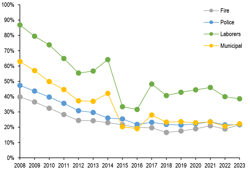 10-year muni yield (%) 2.69 2.10 Finding sustained market consensus while navigating transition to an easing cycle may be difficult, but we suggest playing the long game, and buying municipal bonds with a longer term perspective, particularly in periods where Treasuries sell-off. We suggest adding idiosyncratic municipal risk opportunistically on market weakness, and highlight potential market cheapening in the period before the election.