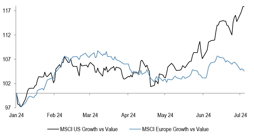 We entered this year again OW Growth vs Value style, same as in 2023, and note that Growth strongly outperformed in the US, and also in Europe.