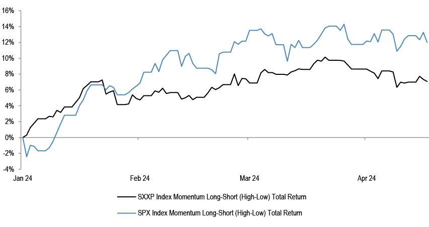 Momentum factor has been performing extremely well in both Europe and the US ytd.