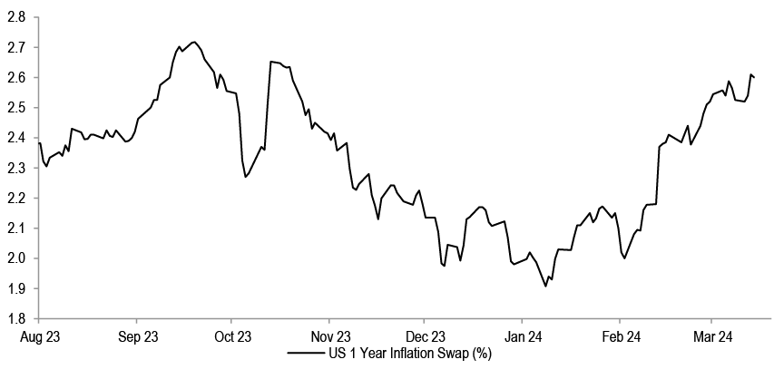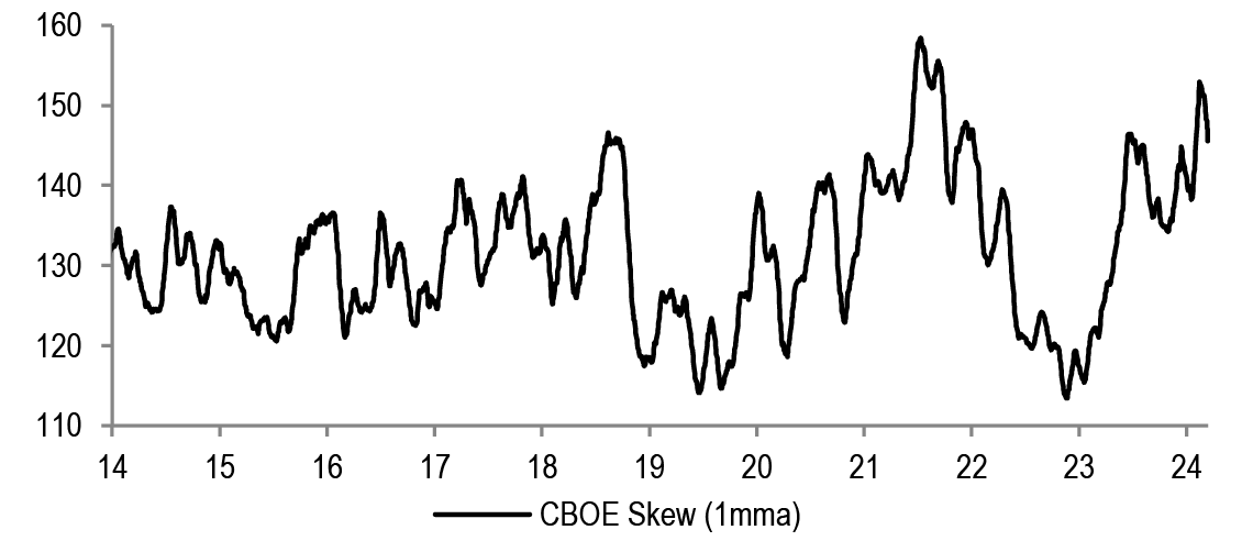 • We are neutralizing the US vs Eurozone preference, but not reversing. This is because the potential for a market drawdown is elevated, in our view, with Goldilocks fully in the price. The risks are on both sides of this narrow path: either to growth disappointing, as seen in latest IFO, ISM, retail sales and US small business confidence, and also from inflation potentially staying too hot, as seen in the US 1-year inflation swaps approaching October highs. In addition, the earnings of Growth style keep beating Value, and US earnings likewise are so far delivering better vs Eurozone. Finally, US politics could potentially turn into a headwind for international markets later on in the year. If markets weaken from here, Eurozone is very unlikely to outperform, but equally the much more attractive P/E multiples in the region relative to clearly stretched US P/E multiples could offer some cushion, at least in relative terms.