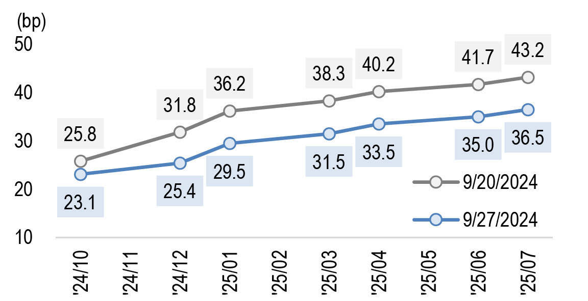 Europe Cross currency basis 4Q24 Outlook: Narrowing bias on risk of earlier Fed QT pause and of faster easing on labour market weakness 26-Sep