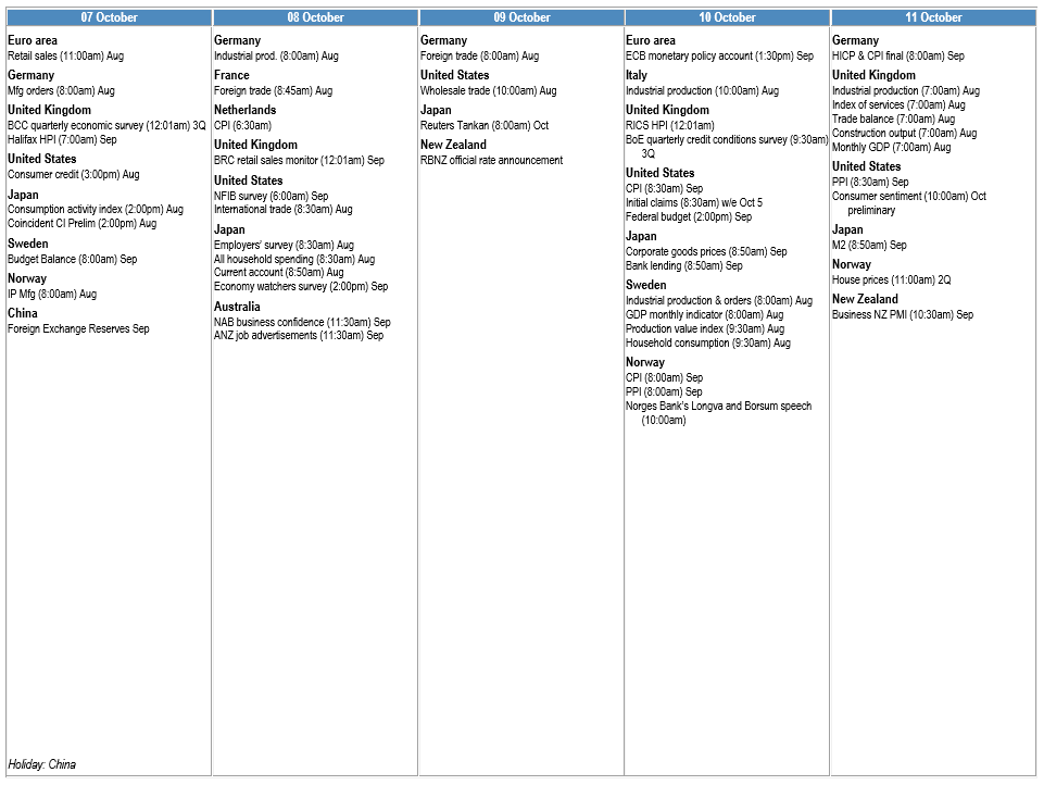 Selective list as of 27 September 2024. Forecasts are m/m, nsa, unless stated & times are local. Telephone your J.P. Morgan representative for an update/more details.